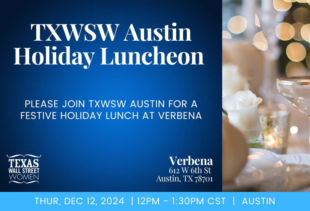 Please join TXWSW Austin for a festive holiday lunch at Verbena on Thursday, December 12, from 12 pm-1:30 pm! It’s a great opportunity to connect and network with fellow TXWSW members while enjoying a delicious meal together. A portion of the event fee supports the amazing work of the Young Women’s Preparatory Network.