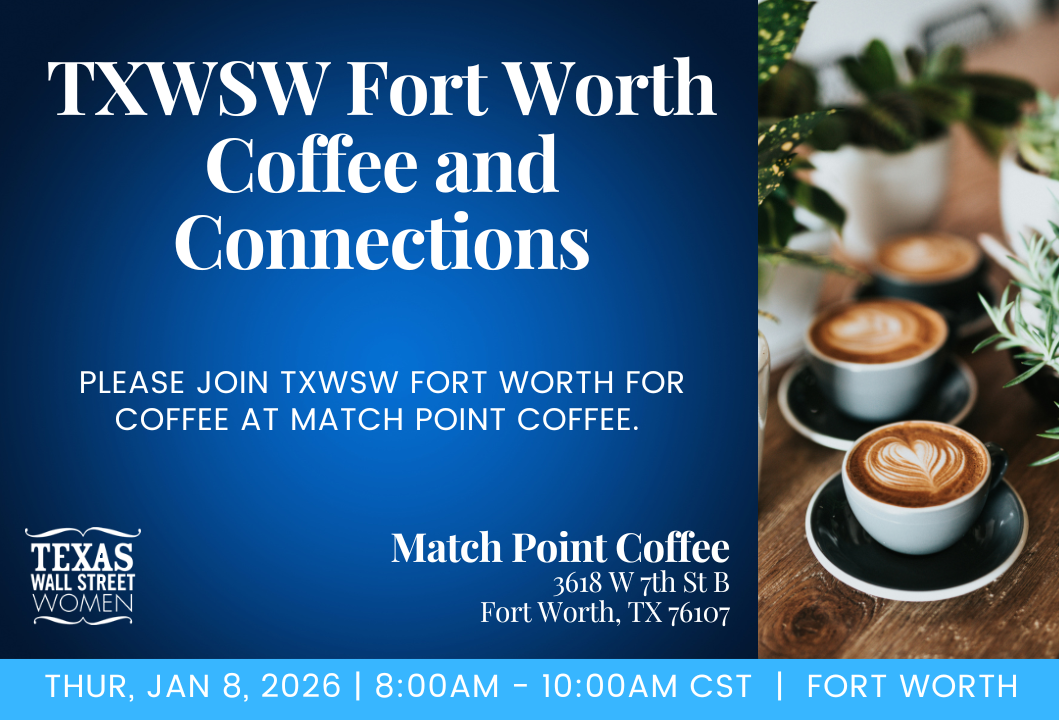 Please join TXWSW Fort Worth for coffee at Match Point Coffee. Stop by on your way to work to connect with other female professionals in the market and grab your favorite latte or tea and pastry. We look forward to seeing you there!