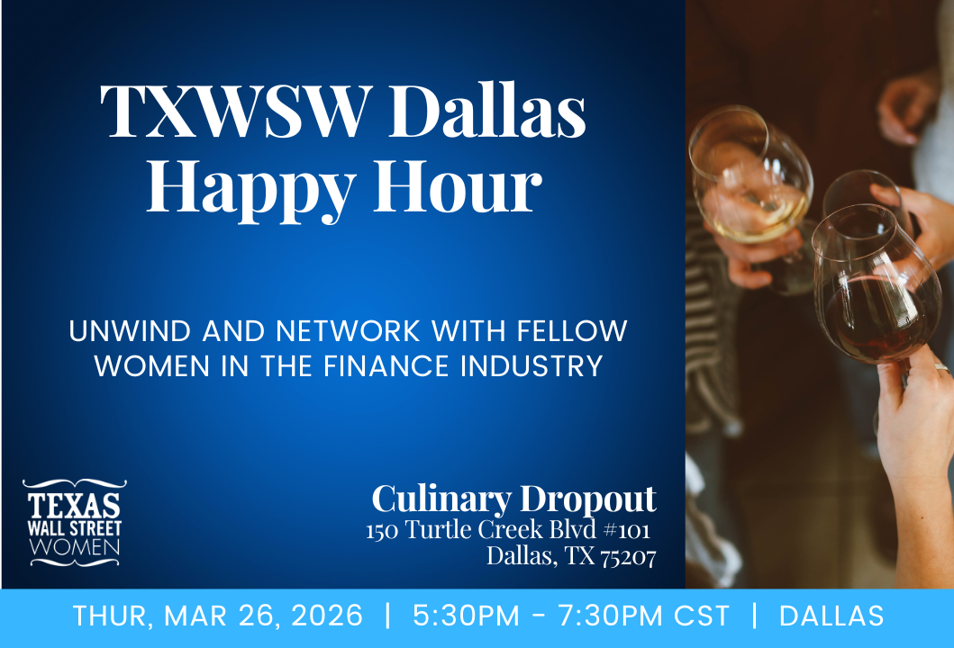 Please join TXWSW Dallas for a happy hour! Unwind and network with fellow women in the finance industry while enjoying handcrafted cocktails and a relaxed, welcoming atmosphere.